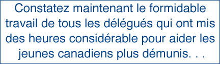 Montréal. Constatez maintenant le formidable travail de tous les délégués qui ont mis des heures considérable pour aider les jeunes canadiens plus démunis... par Benoit Belval, Catherine Bastien et Simon Tetreault |